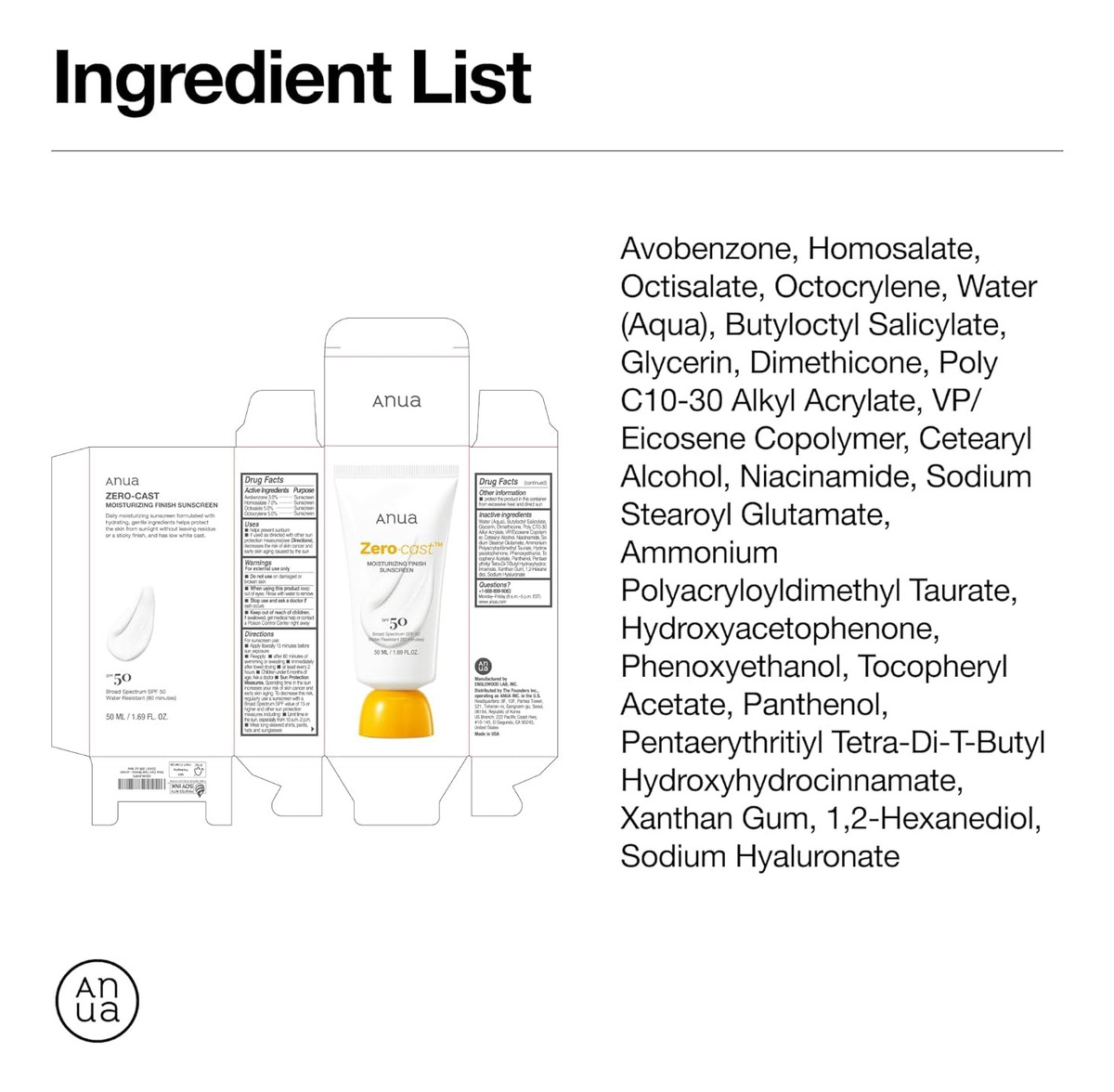 Anua Zero-Cast Moisturizing Finish Sunscreen SPF 50