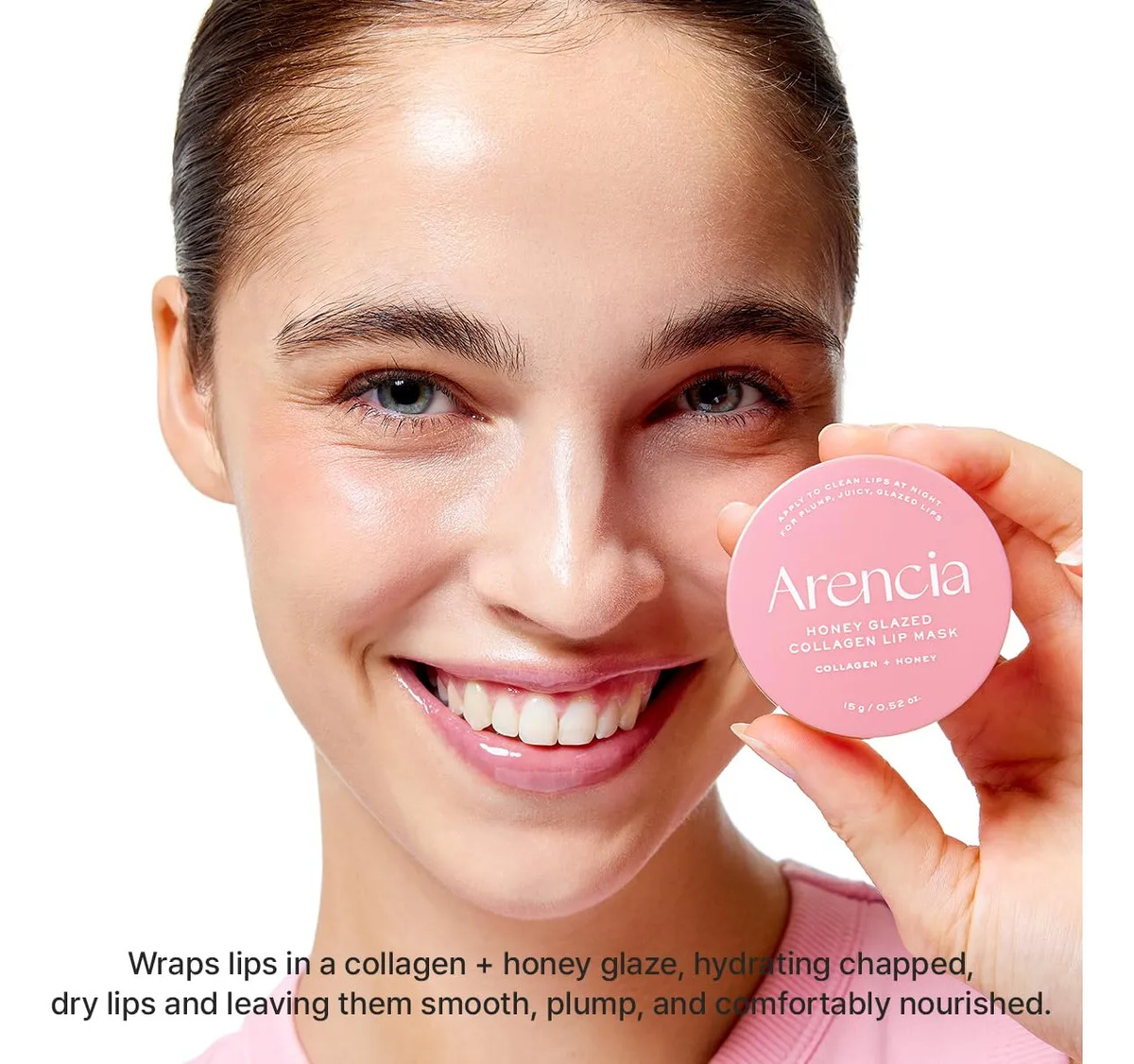 Arencia Honey Glazed Collagen Lip Mask, un tratamiento intensivo que nutre en profundidad mientras dormís y también puede usarse durante el día.