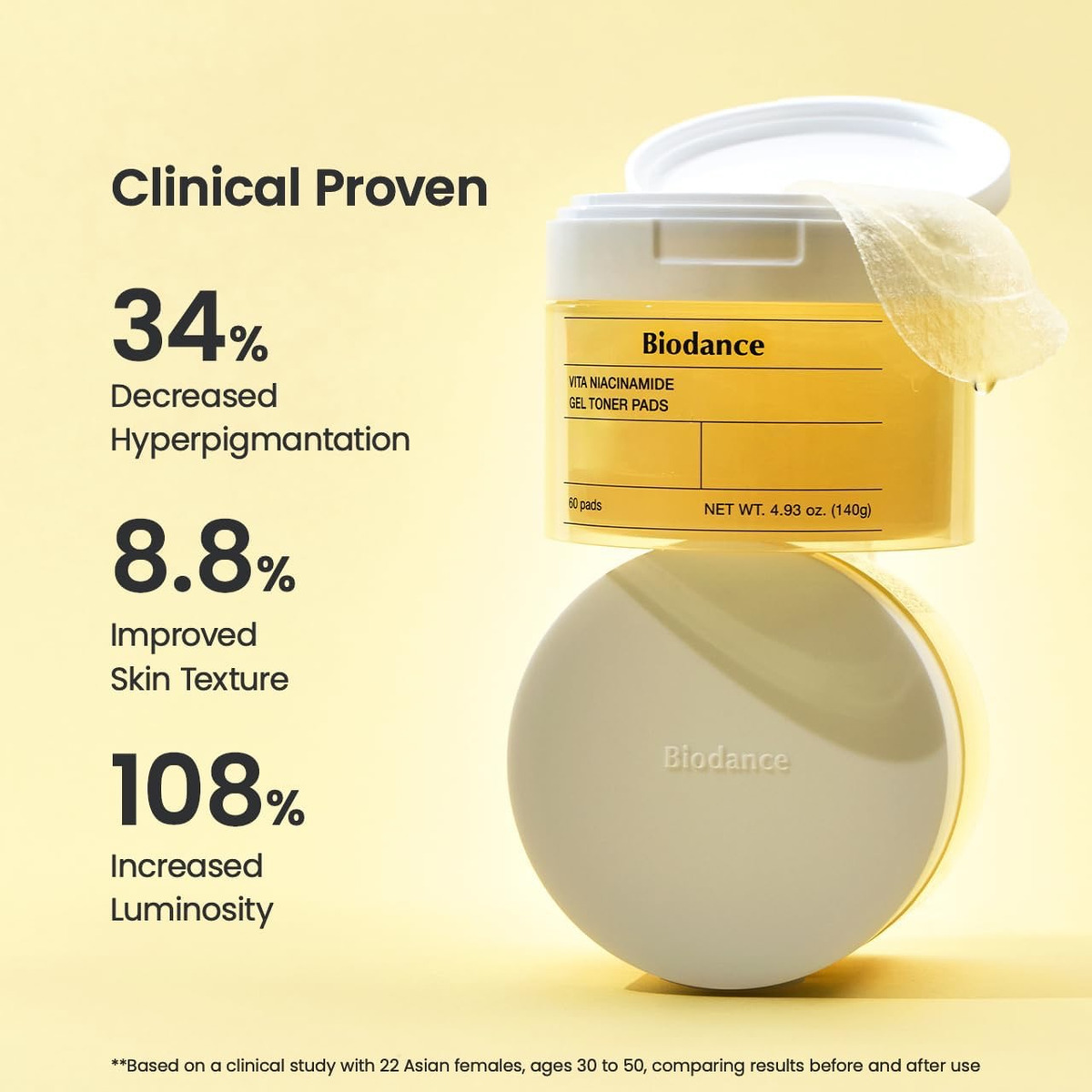 Biodance Vita Niacinamide Gel Toner Pads – 60 almohadillas (4.94 oz)