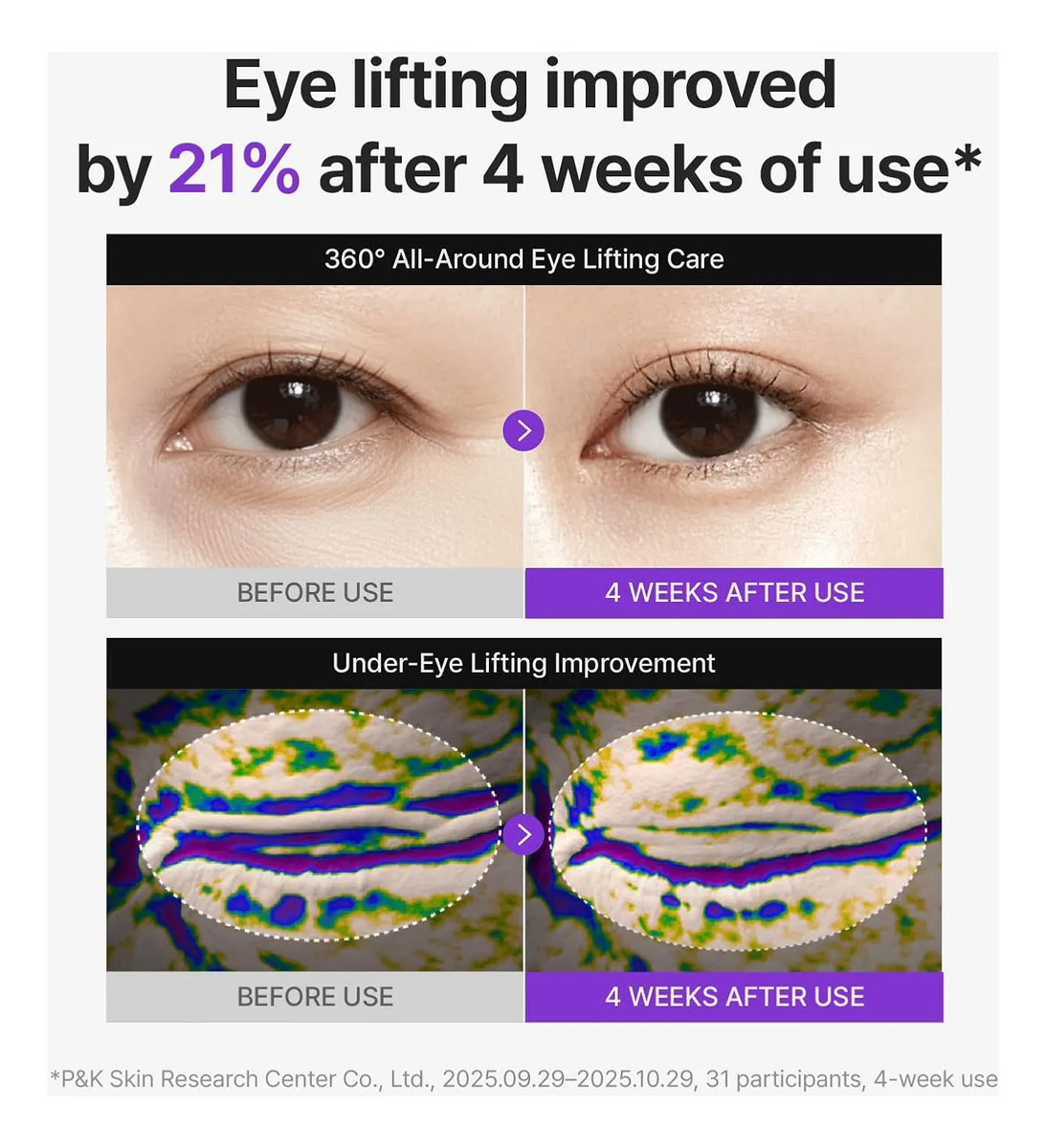 Su potente fórmula combina PDRN, TECA y retinol 3D, activos reconocidos por ayudar a mejorar la elasticidad de la piel, suavizar líneas finas y reducir signos de fatiga como ojeras, bolsas y párpados caídos. Con uso continuo, la piel del contorno luce más firme, lisa y revitalizada.