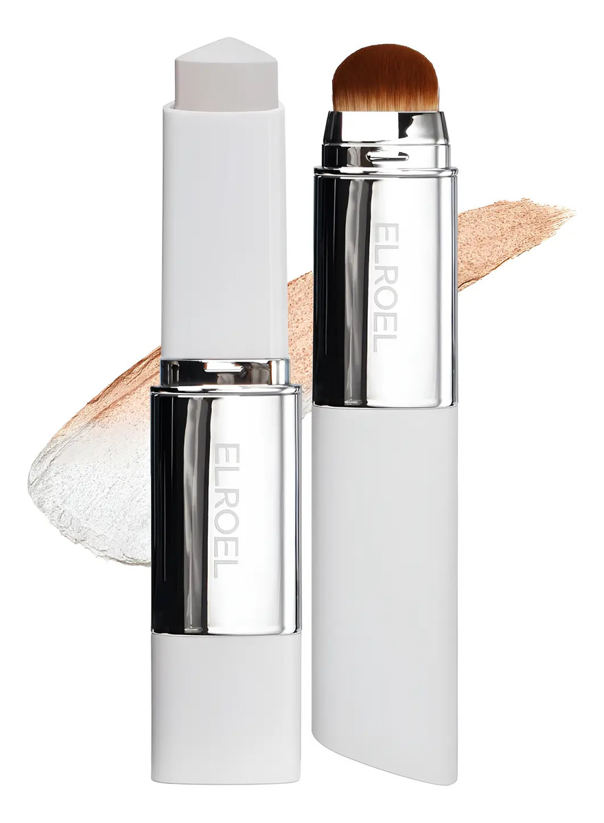 ELROEL Blanc Cover Cream Stick, la innovadora base en barra que cambia de color al contacto con la piel. Comienza como un bálsamo blanco y se transforma en una base sedosa que se funde con tu tono natural, proporcionando un acabado uniforme, luminoso y sin efecto pesado.