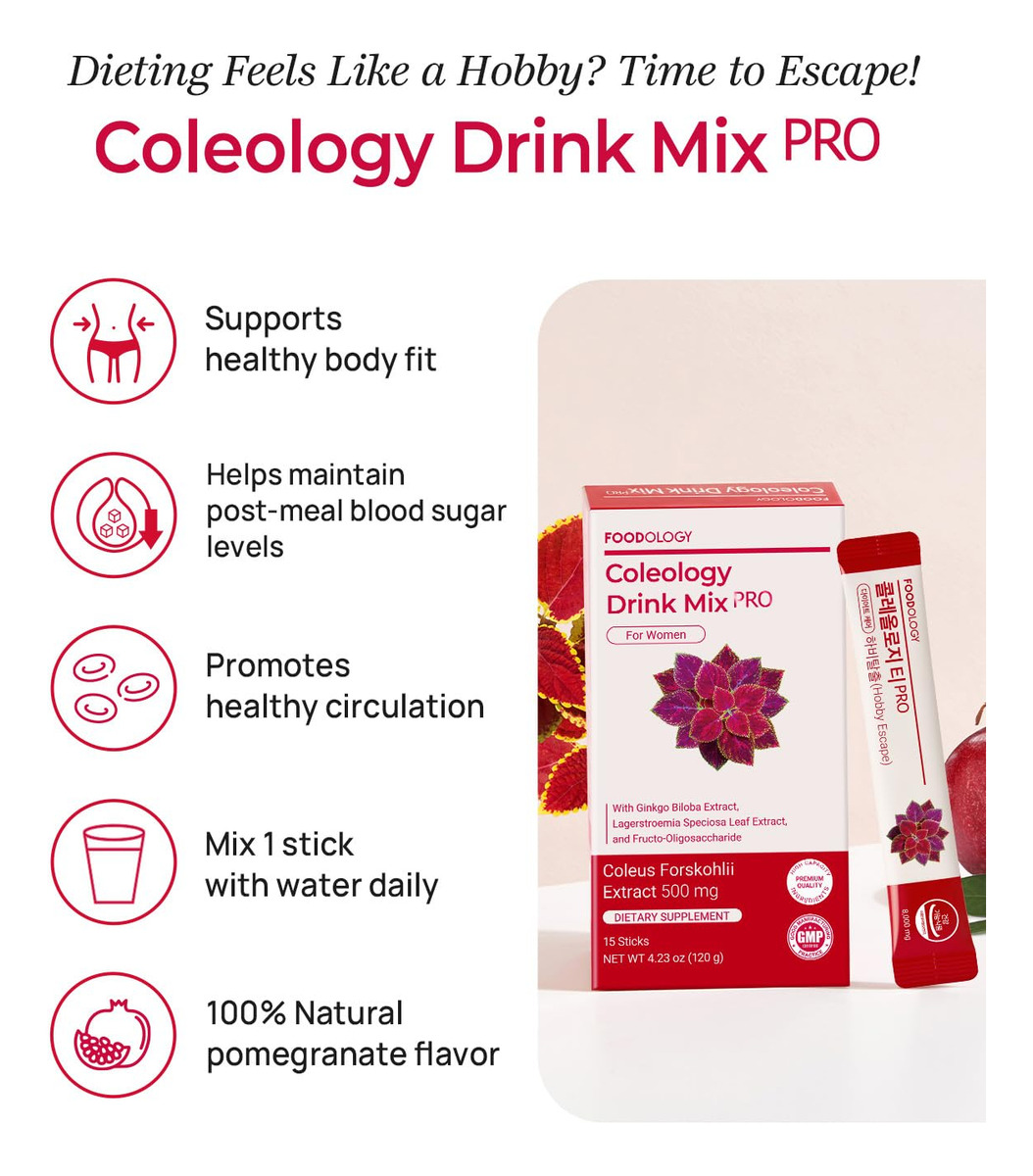 Transformá tu rutina con una bebida deliciosa que trabaja por vos desde el primer sorbo. Coleology Drink Mix PRO es un suplemento en polvo sabor granada 100% natural, diseñado para acompañarte cada mañana con un impulso de bienestar. Su fórmula combina ingredientes botánicos que apoyan el metabolismo de las grasas, la digestión y el equilibrio general del cuerpo.