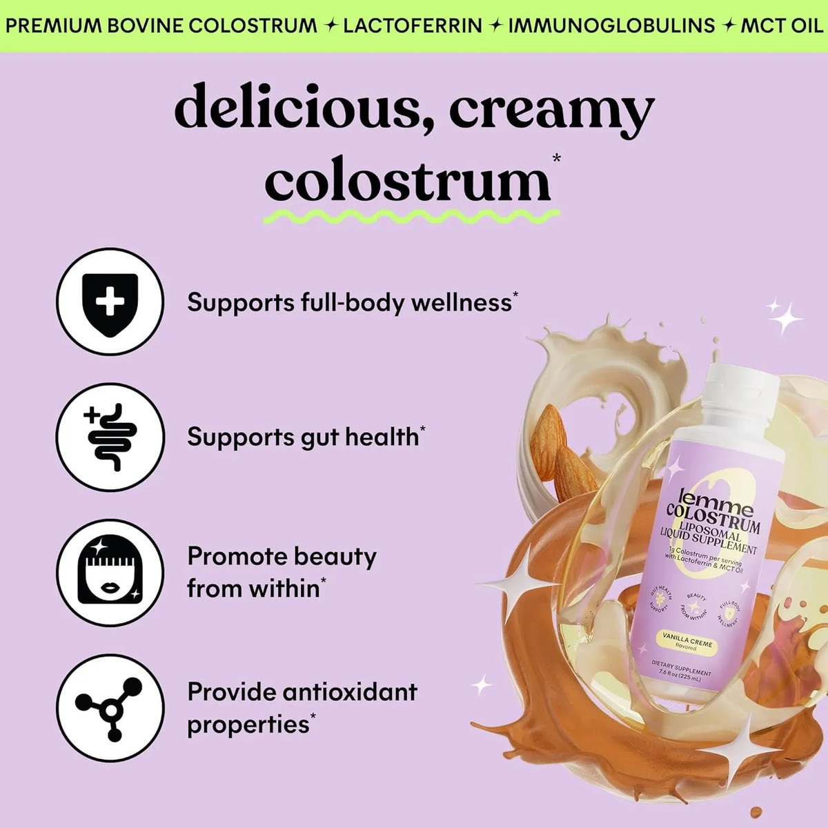 Lemme Colostrum Liposomal Liquid Supplement – Vanilla Creme (7.6 oz / 225 ml)