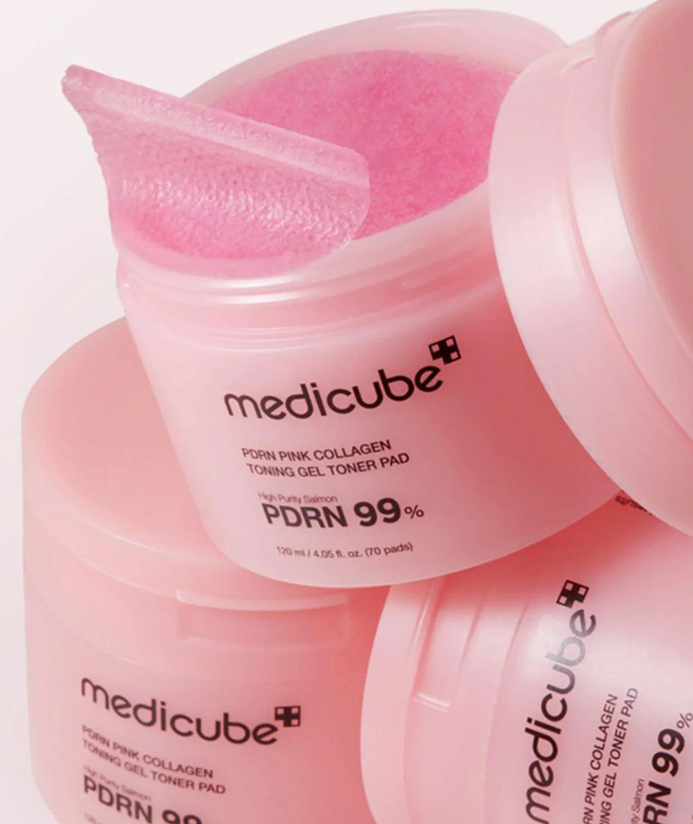 Revoluciona tu rutina de cuidado facial con las almohadillas tonificantes en gel de colágeno rosa de Medicube. Enriquecidas con un 99% de PDRN de salmón de alta pureza y colágeno de bajo peso molecular, estas pads están diseñadas para hidratar, reafirmar y rejuvenecer visiblemente tu piel desde la primera aplicación.