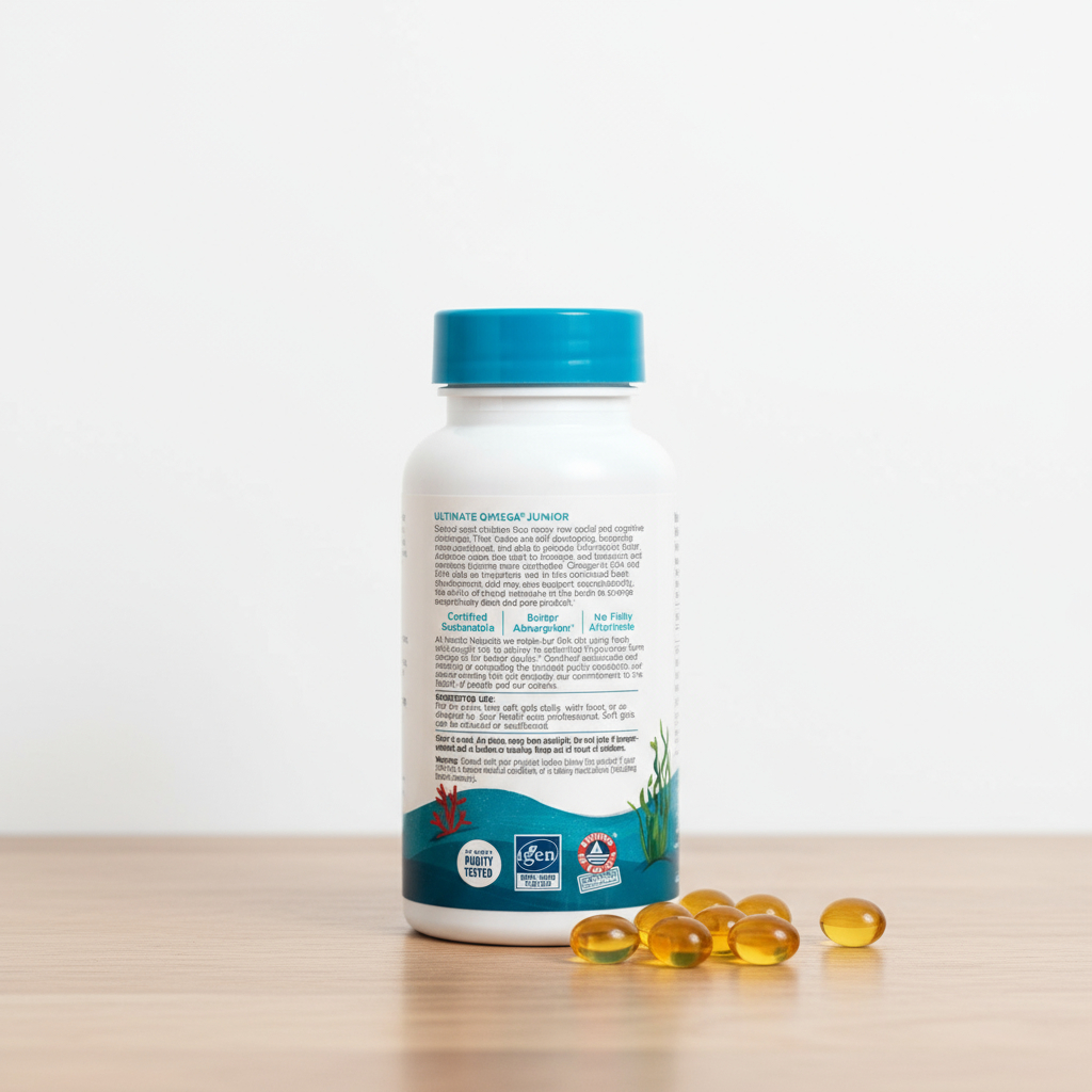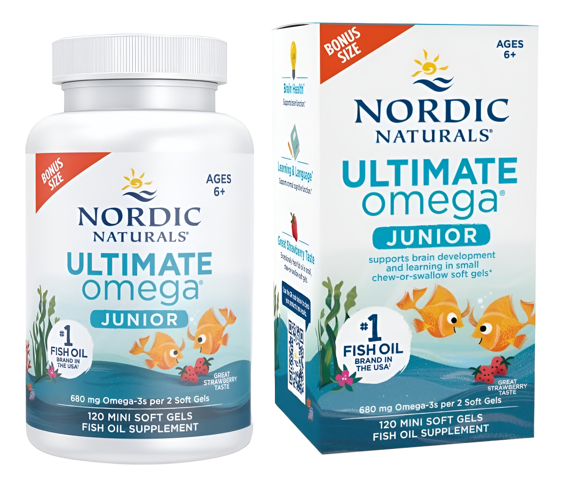 Ultimate Omega Junior es un suplemento de aceite de pescado altamente concentrado, diseñado especialmente para apoyar el desarrollo cerebral y cognitivo de niños en edad escolar. Su fórmula rica en ácidos grasos omega-3 (EPA y DHA) ayuda a potenciar la concentración, la memoria, el aprendizaje y el equilibrio emocional, en una etapa clave del crecimiento infantil.