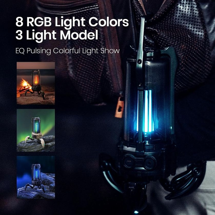 Cuenta con un sistema de iluminación ambiental con 3 modos diferentes: Modo “Dinámico”, que se sincroniza con la música que se esté reproduciendo. Modo “Single Color”, que te permitirá seleccionar entre una variedad de 8 colores, y finalmente el Modo “Camping Light”, que asemeja a una linterna de campismo que imita el gentil parpadeo del fuego.