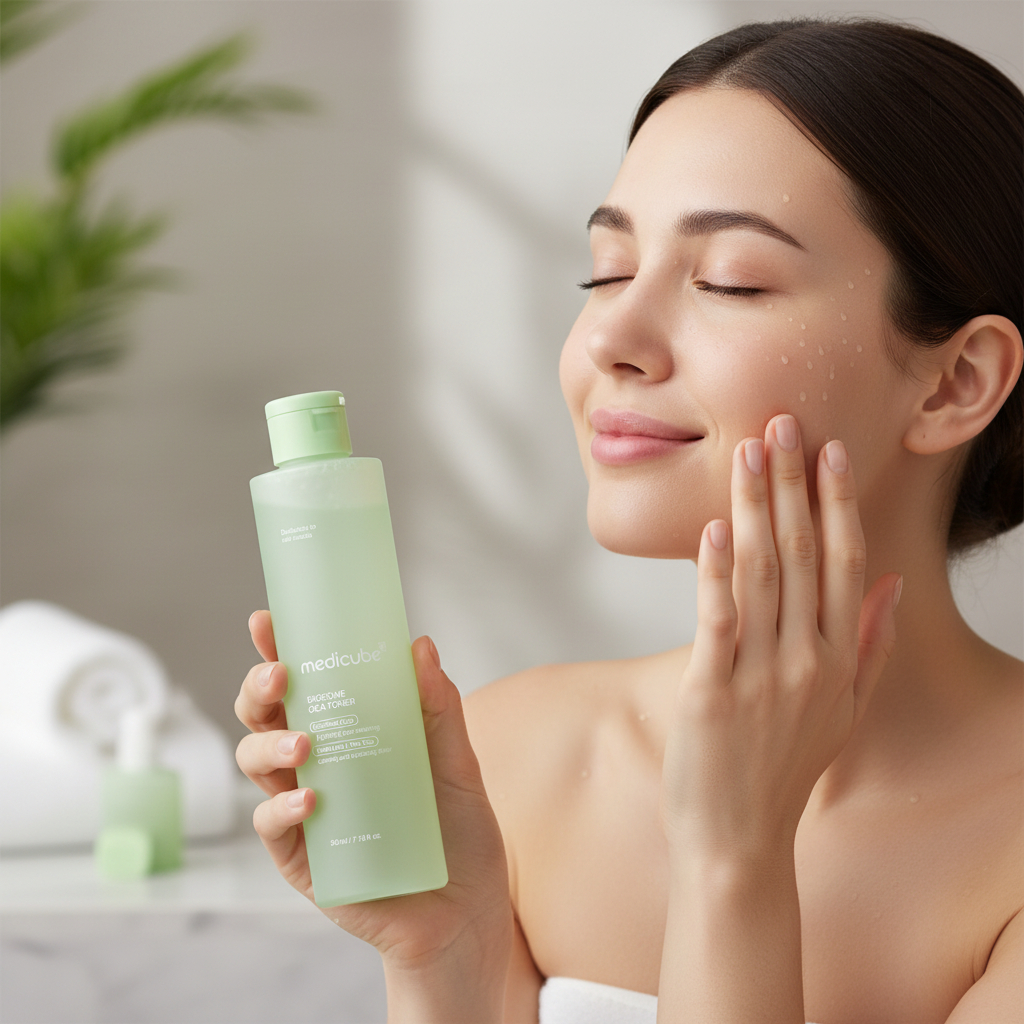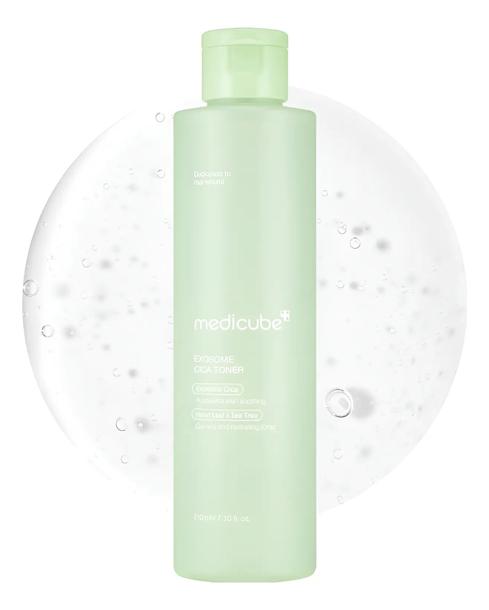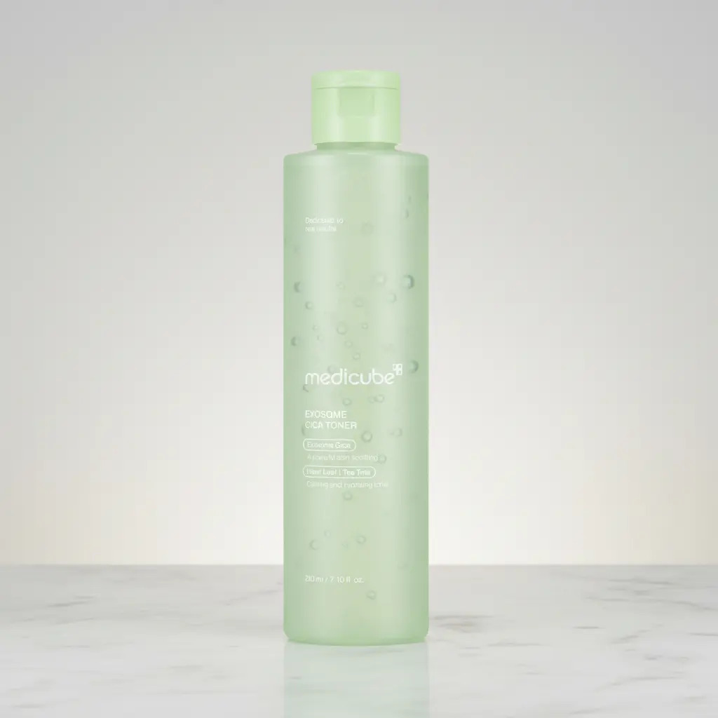 Medicube Exosome Cica Toner es un tónico facial ligero y calmante diseñado para hidratar, equilibrar el exceso de sebo y mejorar visiblemente la textura de la piel. Su fórmula avanzada con Exosome Cica en tamaño nano, 5.3 veces más potente que la cica tradicional, penetra profundamente en la piel para calmar, reparar y aportar un aspecto saludable y radiante.