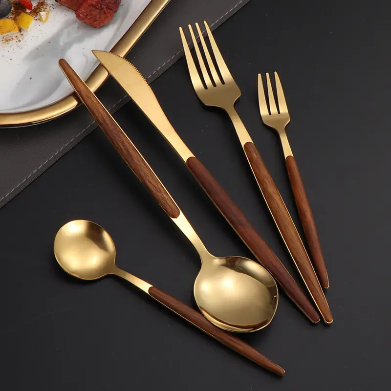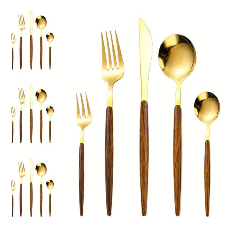 Set De Cubiertos 20 Piezas Acero Inoxidable Y Madera