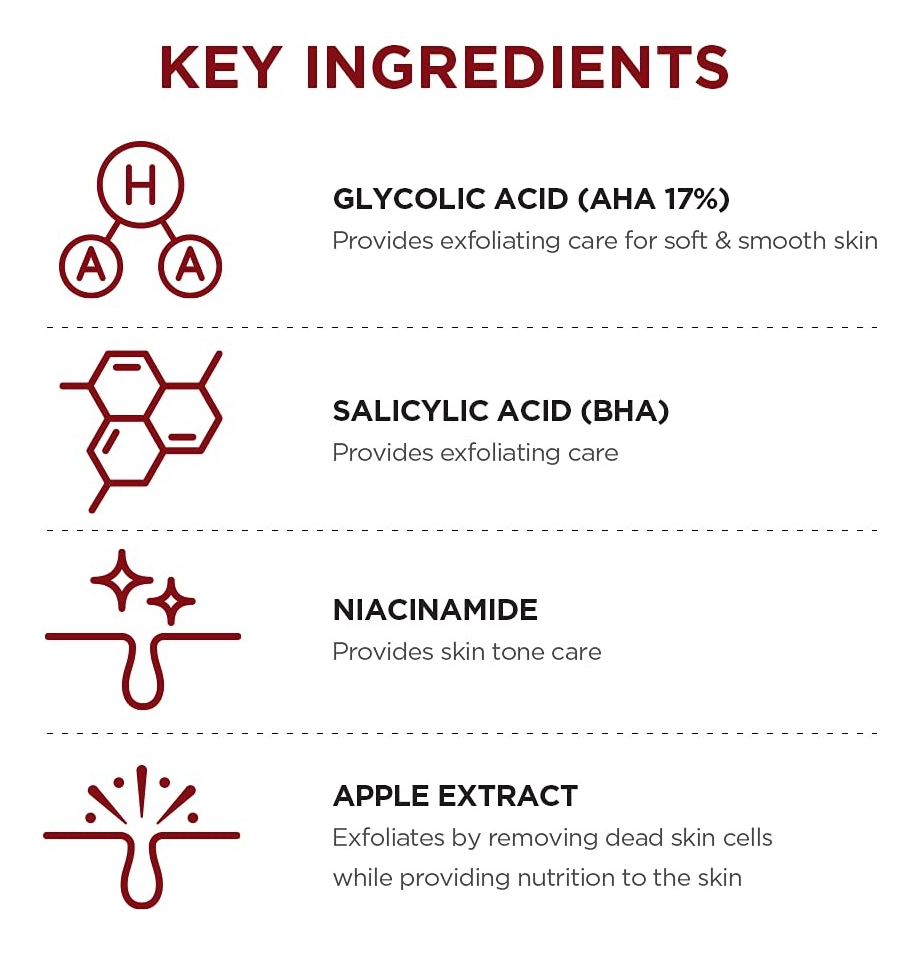 -Exfoliación profunda con ácido glicólico (AHA 17%) y ácido salicílico (BHA)