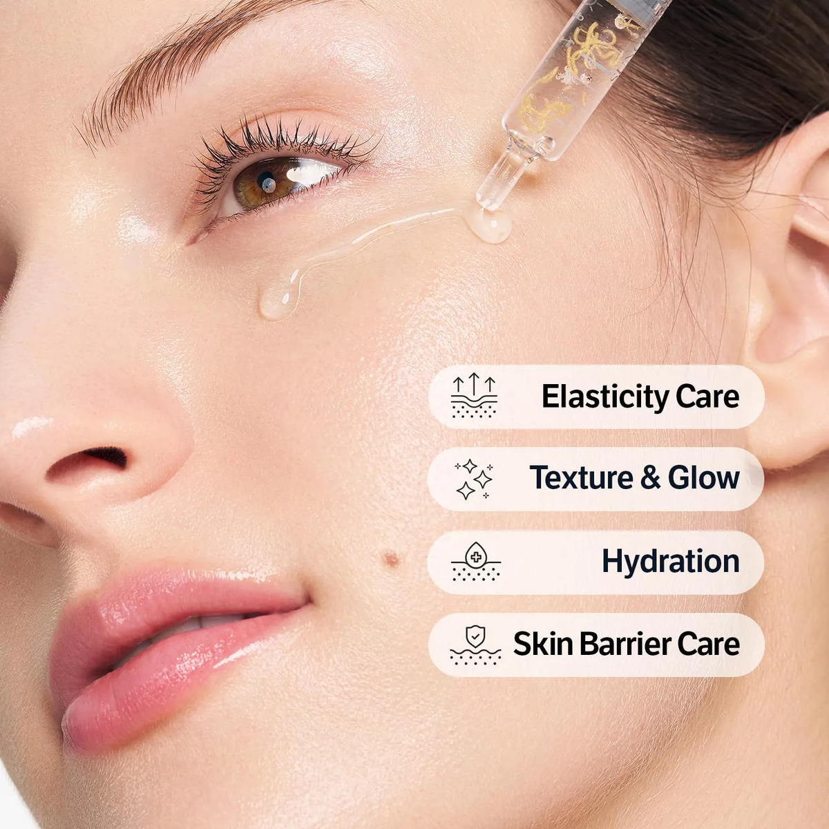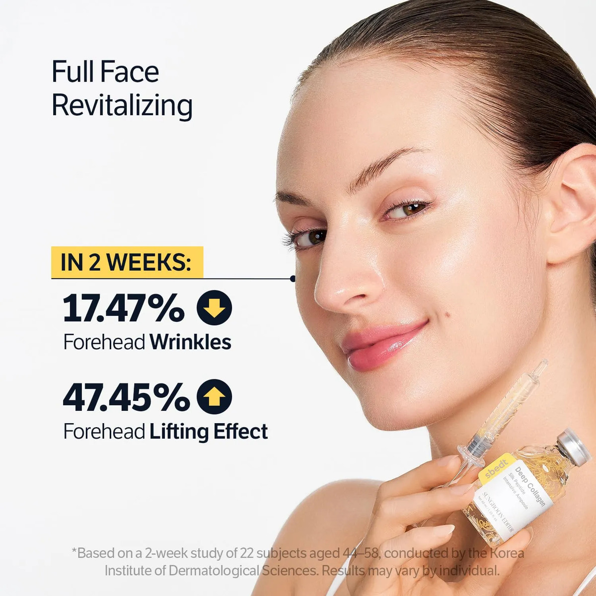 Deep Collagen Silk Peptide Intensive Ampoule de SUNGBOON EDITOR es una ampolla facial intensiva formulada con un avanzado sistema de péptidos y colágeno para mejorar visiblemente la firmeza, elasticidad y suavidad de la piel. Su fórmula combina 13 péptidos patentados, péptidos de cobre y colágeno, creando una malla tensora transpirable que ayuda a reafirmar las zonas flácidas como líneas de expresión, mejillas y contorno de ojos.