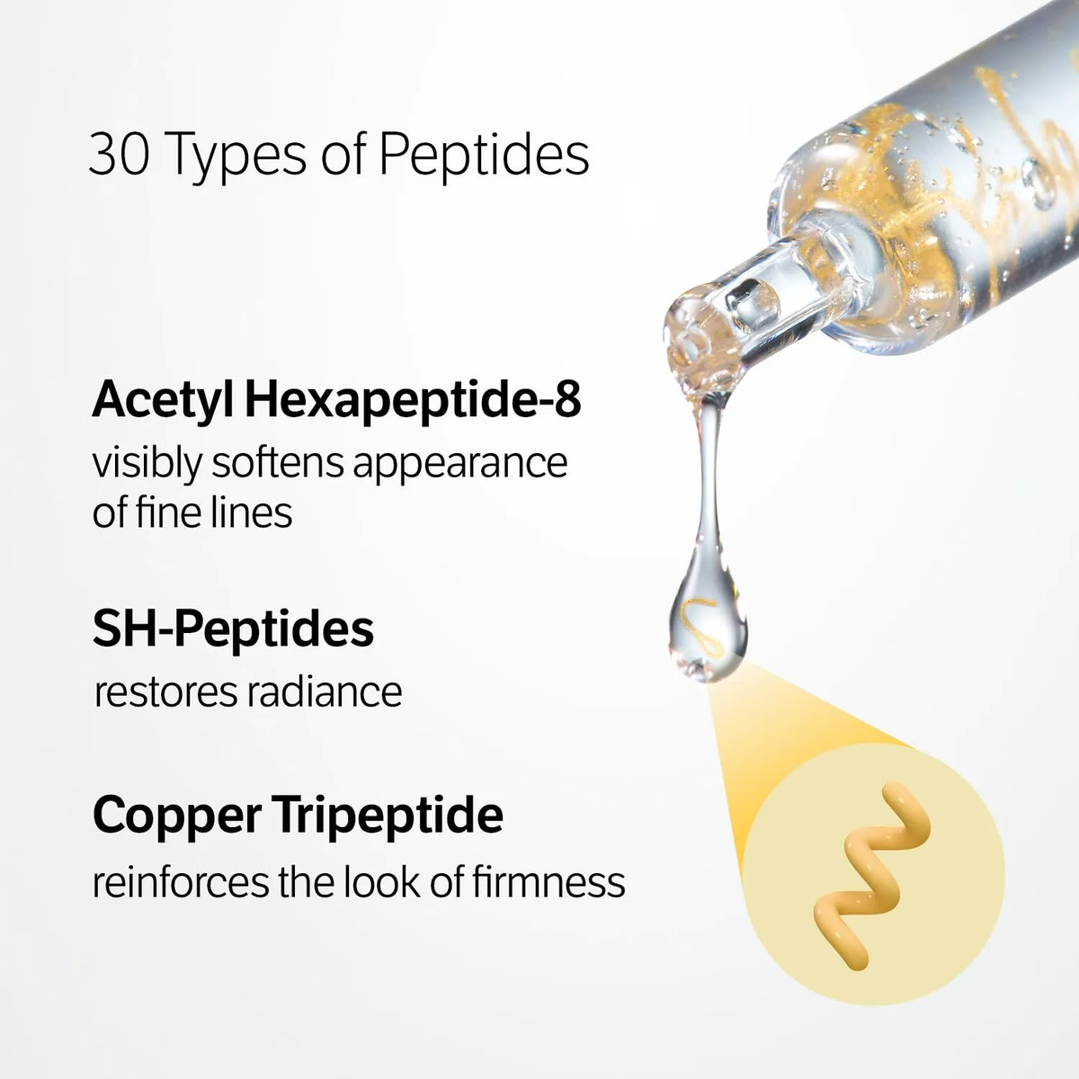 Enriquecida con 30 tipos de péptidos, incluyendo Acetyl Hexapeptide-8, SH-Peptides y Copper Tripeptide, actúa sobre los signos visibles de la edad, ayudando a suavizar líneas finas, mejorar la luminosidad y reforzar la barrera cutánea. Su textura ligera pero nutritiva se absorbe fácilmente, aportando hidratación profunda sin sensación pegajosa.