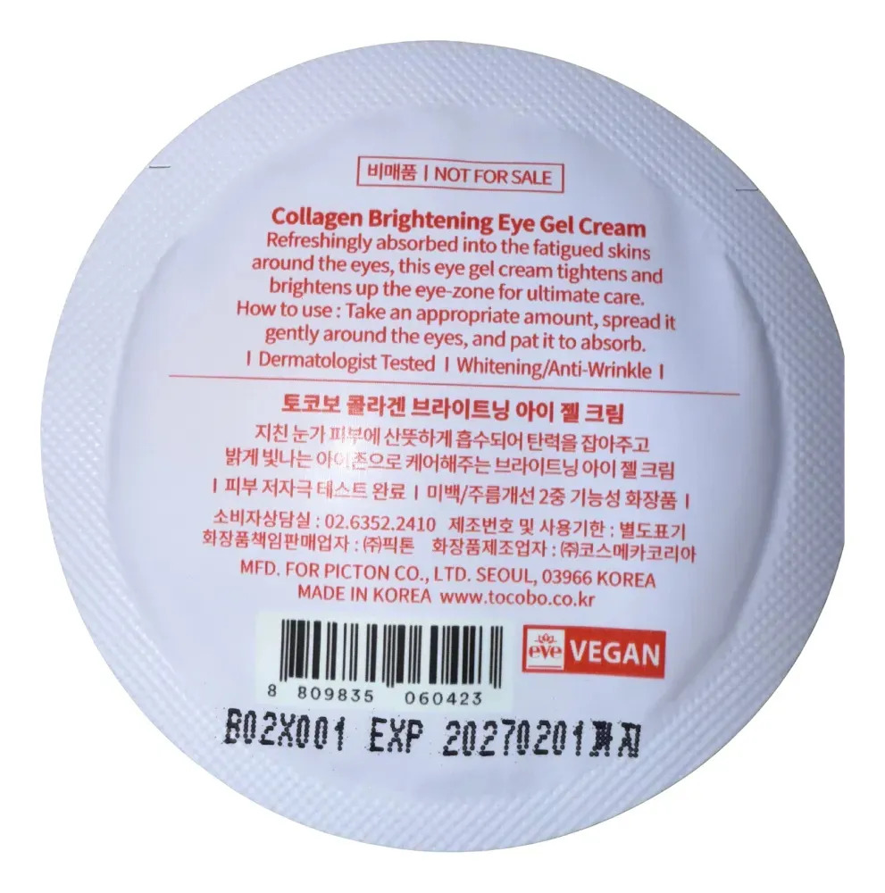 TOCOBO Gel de Ojos Iluminador con Colágeno – 1 ml Talle pequeño